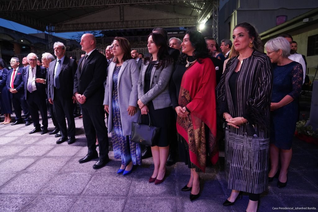 El Presidente Chaves estuvo acompañado por la primera dama, Signe Zeikate, y el ministro de Relaciones Exteriores y Culto, Arnoldo André Tinoco.